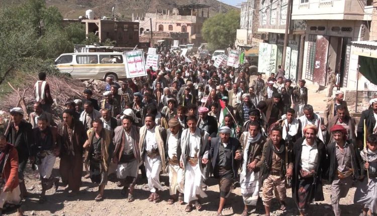 خرج أبناء مديرية المنار بمحافظة ذمار اليوم في ثلاث مسيرات حاشدة تحت شعار “مع غزة ولبنان.. جاهزون لأي تصعيد أمريكي صهيوني” تضامناً مع الشعبين الفلسطيني واللبناني.