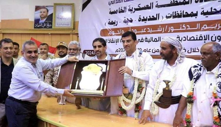 أُقيم بمحافظة الحديدة، اليوم الاثنين، حفل تكريم نائب رئيس الوزراء للشؤون الاقتصادية – وزير المالية السابق، الدكتور رشيد أبو لحوم، نظمتها قيادة المنطقة العسكرية الخامسة والسلطة المحلية بمحافظات الحديدة وحجة وريمة.