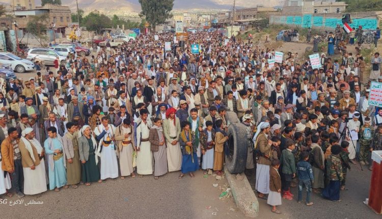 مسيرتان حاشدتان بمديرية ضوران تحت شعار “مع غزة ولبنان.. جهوزية واستنفار ضد قوى الاستكبار”