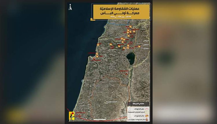 دعمًا للشعب الفلسطيني الصامد في قطاع غزّة وإسنادًا لمقاومته الباسلة والشريفة، ودفاعًا عن لبنان وشعبه، أصدرت المقاومة الإسلامية في لبنان، الاثنين، 22 بيانًا عسكريا حول عمليات التصدي لمحاولات تقدّم العدو الإسرائيلي عند الحدود اللبنانية الفلسطينية والتصدي لمسيّرات وطائرات العدو الحربية، وكذلك عمليات استهداف مواقع وقواعد وانتشار جيش العدو الإسرائيلي ومستوطناته في شمال وعمق فلسطين المحتلة، وفقًا للآتي: