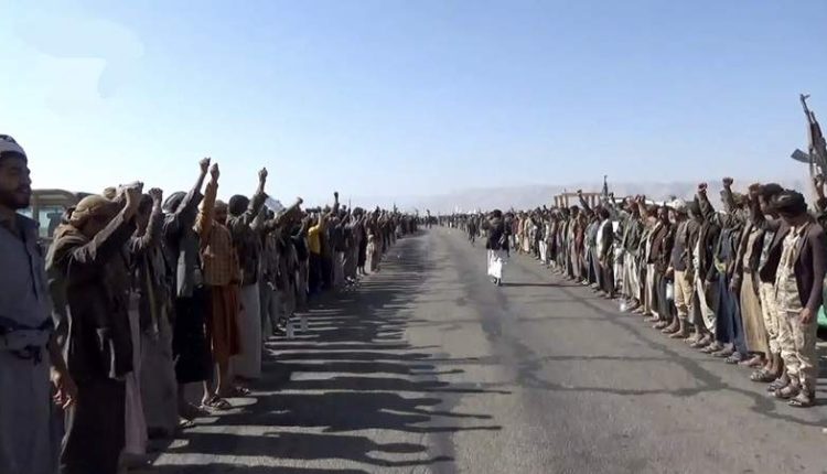 وقفة قبلية مسلحة في مجزر بمأرب تضامنا مع الشعبين اللبناني والفلسطيني