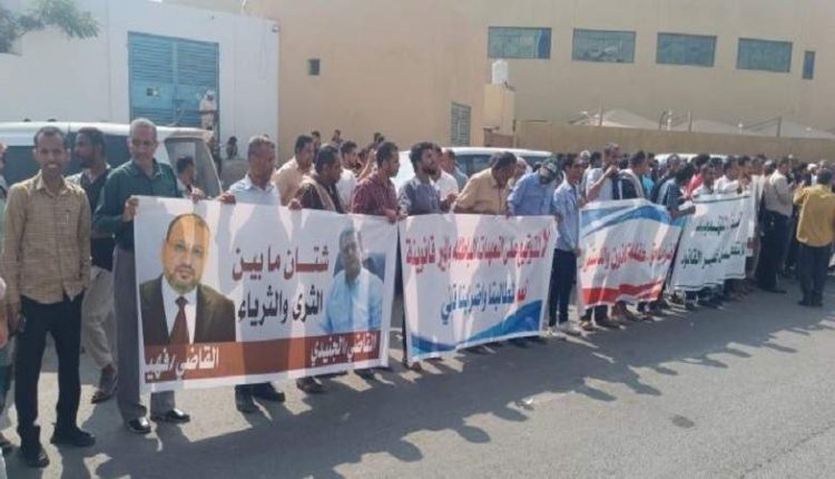 احتجاجات واسعة لموظفي القضاء في عدن المحتلة للمطالبة بتحسين أوضاعهم