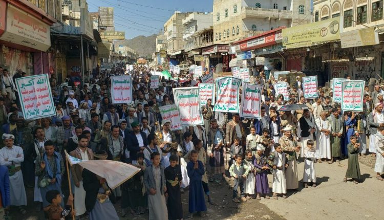 مسيرتان بمديرية جبل الشرق بذمار تحت شعار “مع غزة ولبنان .. على درب الشُهداء حتى النصر”
