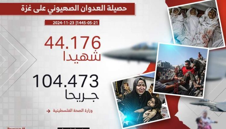 وأشارت “الصحة” إلى ارتفاع حصيلة العدوان الإسرائيلي المستمر على قطاع غزة إلى 44 ألفًا و176 شهيدا، بالإضافة لـ 104 آلاف و473 مصابا بجروح متفاوتة، منذ الـ 7 من أكتوبر 2023.