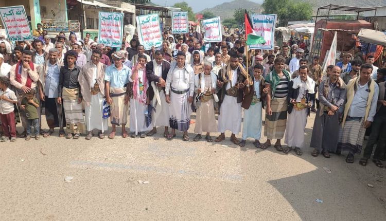 وخلال المسيرات التي حضرها عضو مجلس الشورى الدكتور عبده سعد الفقيه، ومدير عام المديرية فؤاد القديمي، ومدراء مكاتب تنفيذية واشرافية، ردد المشاركون هتافات مباركة النصر للبنان، بعد هجوم الاحد اللاهب والاستمرار مع غزة حتى النصر ، منددين باستمرار الحصار والتجويع وجرائم الإبادة الجماعية التي يرتكبها الكيان الصهيوني بحق أبناء الشعب الفلسطيني في قطاع غزة، والتفويض للسيد القائد عبد الملك بدر الحوثي حفظه الله.