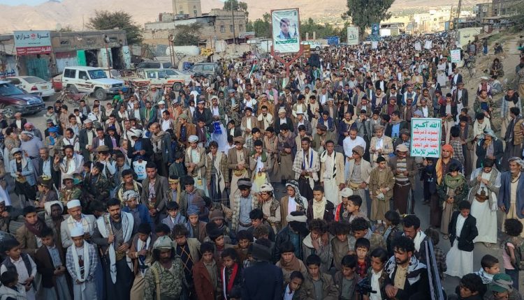 ورفع المشاركون في المسيرتين “بمنطقة حدقة، ومدينة ضوران “، بحضور قيادات تنفيذية ومحلية ، وتعبوية، وشخصيات إجتماعية ، الأعلام اليمنية والفلسطينية ورايات الحرية ورايات المقاومة، وصورًا للقادة الشهداء ، مؤكدين على الموقف الثابت والمبدئي في نصرة الشعب الفلسطيني حتى النصر.
