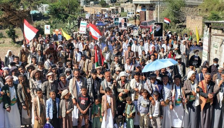 شهدت مديرية عتمة بمحافظة ذمار ،اليوم مسيرتين حاشدتين  تضامناً مع الشعبين الفلسطيني واللبناني تحت شعار “مباركة للبنان ومع غزة حتى تنتصر .. والإحتلال إلى زوال”.