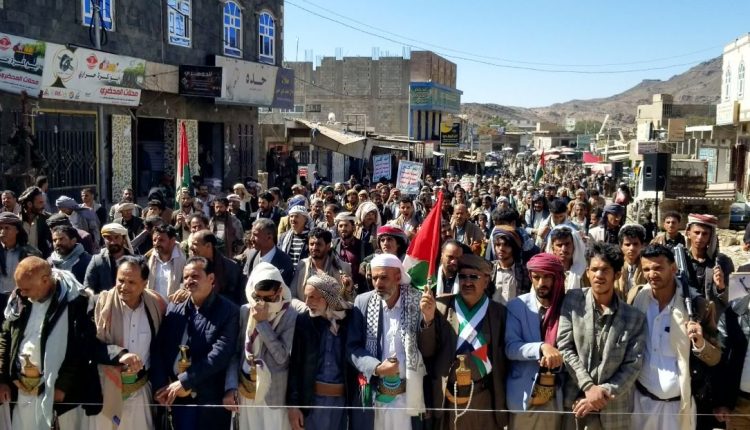 مسيرة حاشدة بمديرية الحداء تحت شعار “مباركة للبنان ومع غزة حتى النصر والاحتلال إلى زوال”.