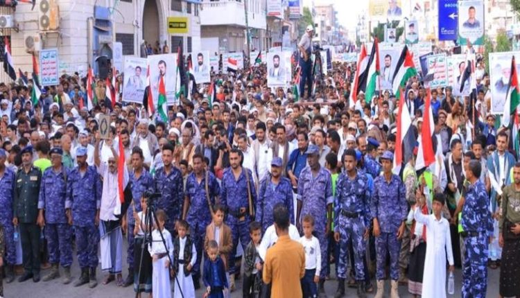 وجددت المسيرات الادانة والاستنكار وبأشد العبارات لتمادي العدو الصهيوني في جرائمه المستمرة بحق أطفال ونساء غزة، وارتكاب أفظع مجازر القتل والحصار والتجويع والإبادة الجماعية، بمشاركة أمريكا ودعم غربي وتواطؤ وخذلان معيب من مدعي العروبة والاسلام والانتماء للدين.