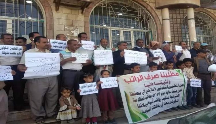 معلمو تعز يهددون بالتصعيد وتعليق الدراسة لعجز حكومة المرتزقة دفع رواتبهم
