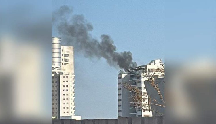 قسم الفيديو، متداول على وسائل التواصل الاجتماعي، وقليل من مبنى سكني في منطقة يفنه شمال مدينة أسدود المحتلة”.