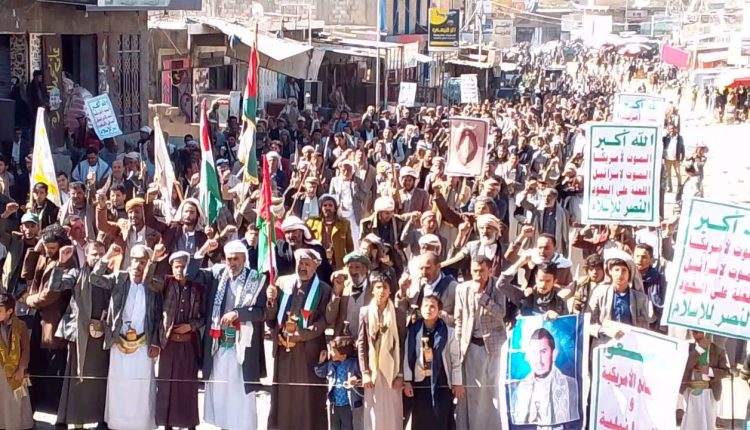 مسيرة حاشدة لأبناء الحداء بعنوان “مع غزة جهاد وتعبئةً واستنفار .. جاهزون لردع اي عدوان”.