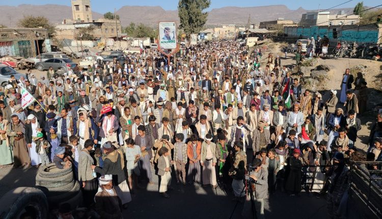 أربع مسيرات حاشدة بمديرية ضوران تحت شعار “ثابتون مع غزة العزة . . بلا سقف ولا خطوط حمراء”