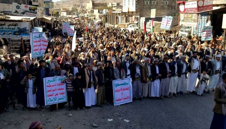 مسيرتان حاشدتان في مديرية الحداء تحت شعار “ثابتون مع غزة العزة… بلا سقف ولا خطوط حمراء”