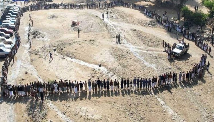نظم أبناء مديرية مدينة البيضاء، اليوم وقفة تضامنية مع الشعب الفلسطيني ودعما لصمود المقاومة في غزة والاستعداد لمواجهة العدو الصهيوني، الأمريكي، البريطاني.