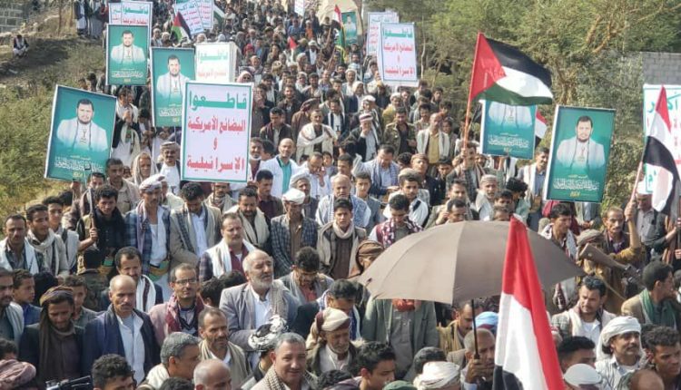 خمس مسيرات حاشدة في مديرية عتمة تحت شعار “ثابتون مع غزة.. بهويتنا الإيمانية ومسيرتنا القرآنية”.
