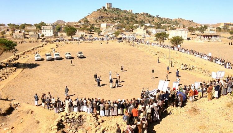 وقفة قبلية مُسلحة بمديرية جبل الشرق بذمار إعلاناً للجهوزية لمواجهة أي تصعيد صهيو أمريكي على اليمن