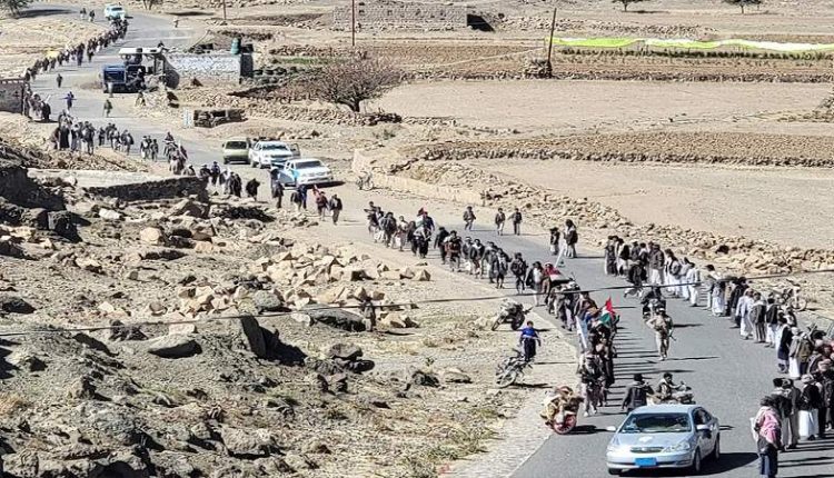 مسير راجل ووقفة مسلحة لخريجي دورات طوفان الأقصى بمديرية الحصن بصنعاء