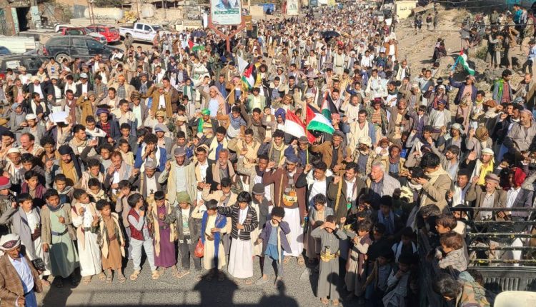 أربع مسيرات حاشدة بمديرية ضوران تحت شعار “جهادا في سبيل الله ونصرةً لغزة سنواجه كل الطواغيت”