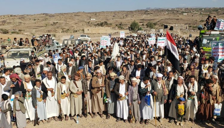 أربع مسيرات حاشدة بمديرية جبل الشرق بذمار تحت شعار “جهاداً في سبيل الله ونُصرةً لغزة.. سنواجه كل الطواغيت”