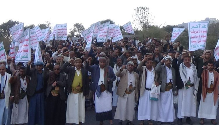 أربع مسيرات حاشدة بمديرية وصاب العالي بذمار تحت شعار “جهاداً في سبيل الله ونُصرةً لغزة.. سنواجه كل الطواغيت”