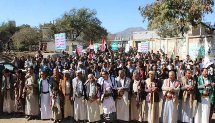 خمس مسيرات حاشدة في مديرية عتمة تحت شعار “مع غزة.. ثبات وانتصار”