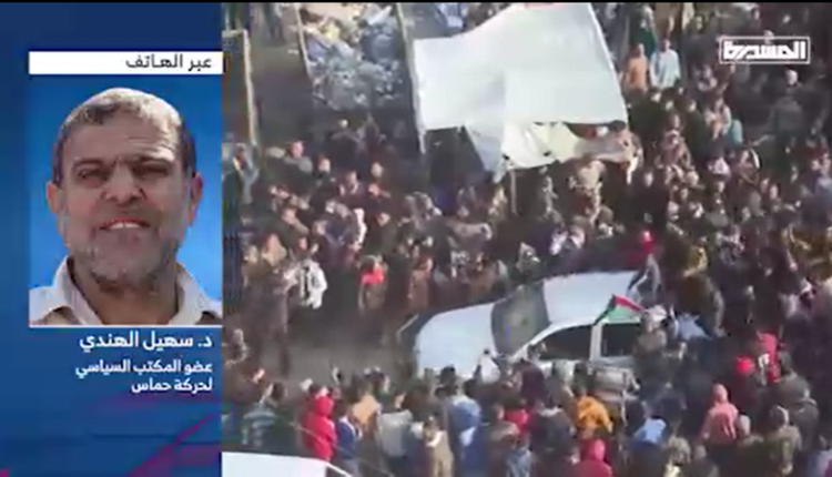 أكد عضو المكتب السياسي في حركة حماس الدكتور سهيل الهندي أن فصائل المقاومة استطاعت اليوم تنفيذ أولى خطوات الاتفاق مع العدو الصهيوني حيث سلمت العدو 3 أسيرات في أولى خطوات الاتفاق.