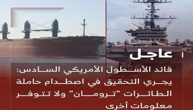 وقال قائد الأسطول الأمريكي السادس: إنه يجري التحقيق في اصطدام حاملة الطائرات “ترومان” ولا تتوفر معلومات أخرى.