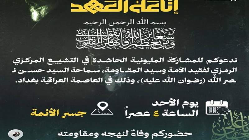 يتوافد الآلاف المشيعين من 90 دولة وسيصلون تباعا إلى مطار بيروت للمشاركة في مراسم تشييع جثمان الشهيد الأسمى السيد حسن نصرالله والسيد الهاشمي صفي الدين رضوان الله عليهما.