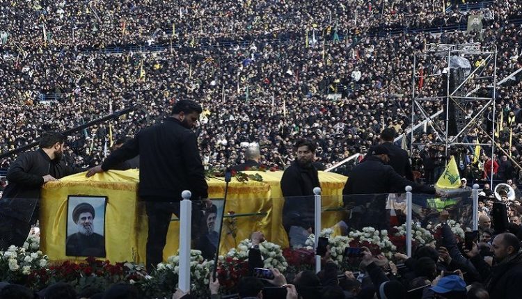 حشود مهيبة من جمهور المقاومة ومحبي السيدين نصر الله وصفي الدين تقاطرت منذ أولى ساعات الفجر، من مختلف المناطق اللبنانية، والمخيمات الفلسطينية، إلى المدينة الرياضية في بيروت، إلى جانب وفود رسمية وشعبية من دول عربية وإسلامية وأجنبية، كان أرفعها مستوى الوفد الإيراني الذي ضم ممثلين عن آية الله العظمى الإمام السيد علي الخامنئي ورئيس الجمهورية الإسلامية في إيران، كما حضر رئيس مجلس الشورى الإسلامي محمد باقر قاليباف ووزير الخارجية عباس عراقتشي وعدد من أعضاء مجلس الشورى وعوائل الشهداء وشخصيات رسمية من مختلف المؤسسات الرسمية في إيران.