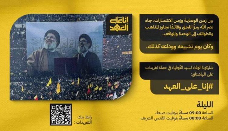 مساء الليلة .. انطلاق حملة تغريدات واسعة وفاء لسيد الأوفياء نصرالله