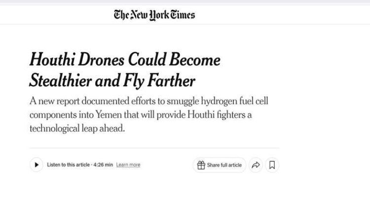 وأفاد تقرير لصحيفة نيويورك تايمز أن باحثين في مجال الأسلحة وجدوا أدلة تشير إلى أن الحوثيين ربما اكتسبوا تقنيات جديدة تصعب اكتشاف الطائرات المسيّرة وتساعدها على التحليق لمسافات أبعد.