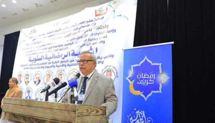جاء ذلك خلال مشاركته الأحد في فعالية الاحتفاء بذكرى النصر المبين في معركة بدر الكبرى وفتح مكة، وإحياء الذكرى الـ 26 لرحيل شيخ الإنشاد العلامة الحافظ محمد حسين عامر التي أقامتها جمعية المنشدين اليمنيين ومؤسسة اليمن للثقافة والتنمية السياسية والائتلاف الوطني لمنظمات المجتمع المدني والاتحاد العربي للثقافة والابداع، وسط حضور شخصيات سياسية وثقافية وإعلامية بارزة وحشد من المواطنين.