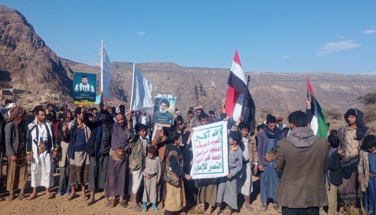 مسيرتان بمديرية عنس بذمار تحت شعار “ثابتون مع غزة .. ونواجه التصعيد الأمريكي بالتصعيد”