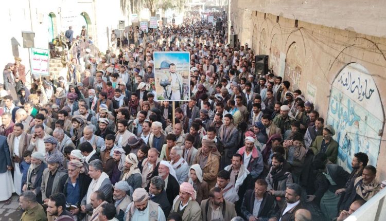 وفي المسيرة التي تقدمها مدير عام المديرية هاشم الوريث، ومسؤول التّعبئة العامة بالمديرية يحيى حسين الكبسي، وقيادات محلية وتنفيذية وتعبوية وأمنية، أكد المشاركون الوقف بحزم أمام التصعيد الأمريكي على اليمن ووقوفهم إلى جانب الشعب الفلسطيني في غزة الذي يتعرض للحصار ومنع الغذاء والدواء من قبل العدو الصهيوني بمشاركة أمريكية واضحة ومعلنة.