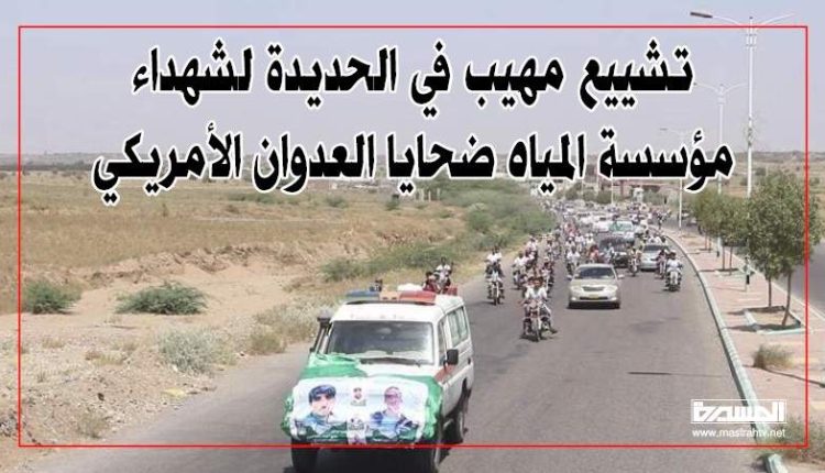 تشييع مهيب في الحديدة لشهداء مؤسسة المياه ضحايا العدوان الأمريكي