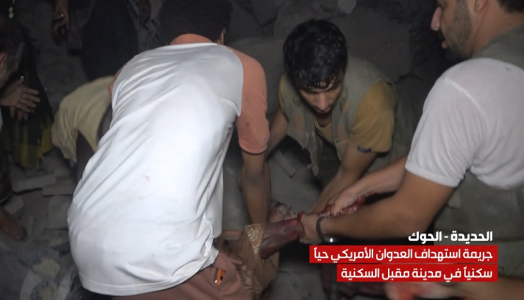 محلي الحديدة يستنكر مجزرة العدوان الأمريكي بحق الأبرياء في حي أمين مقبل