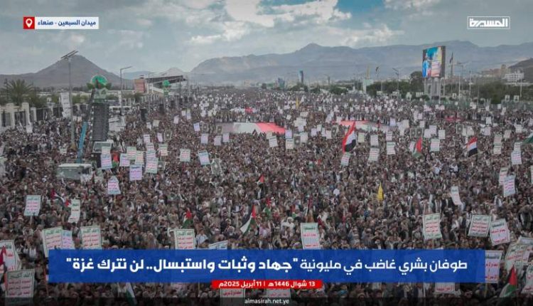 الخروج -الذي استأنف به الشعبُ اليمني احتشادَه الأسبوعي نصرةً لغزة بعد عودة الإبادة الجماعية الصهيونية- لم يحمل فقط رسائلَ التمسك بمبدأ مساندة الشعب الفلسطيني فحسب، بل وجّه رسائلَ تَحَـــدٍّ وتصعيد جديدة وبالغة الأهميّة، حَيثُ جاء مع اقتراب مرور شهر كامل على بَدء العدوان الأمريكي الجديد الذي شنته إدارة ترامب ضد اليمن في منتصف مارس الماضي، قبل أَيَّـام فقط من استئناف العدوان الصهيوني على غزة، كمحاولةٍ استباقية لتحييد حجم وفعالية التدخل الحتمي لجبهة الإسناد اليمنية، وقد اعتمدت الإدارةُ الأمريكية في هذا العدوان على استراتيجيات “ترهيبية” متنوعة، منها توسيعُ نطاق الاستهداف للمناطق المدنية، وشن حملة دعائية واسعة لتخويفِ الشعب اليمني ومحاولة صناعة “انتصارات” وهمية؛ بهَدفِ كسرِ المعنويات، وتفتيت تماسُكِ الموقف الجماهيري الذي كان له دورٌ رئيسي وبارزٌ في الدفع بالموقف العسكري والرسمي المساند لغزة إلى مستوياتٍ عليا خلال الجولة الماضية من المواجهة.