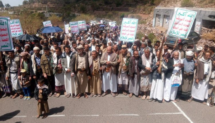 أحتشد أبناء مديرية مغرب عنس محافظة ذمار في مسيرة جماهيرية حاشدة بعنوان «ثابتون مع غزة.. على رغم أنف الأمريكي وجرائمه»