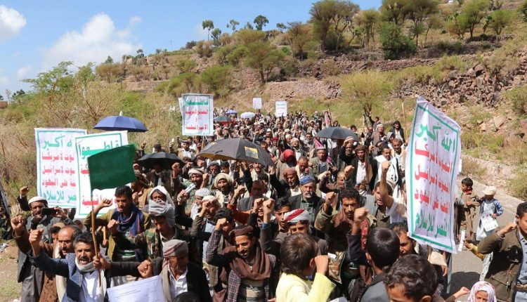 خرج أبناء مديرية مغرب عنس محافظة ذمار صباح اليوم في مسيرة جماهيرية حاشدة بعنوان « مع غزة وفلسطين.. في مواجهة القتلة والمستكبرين»