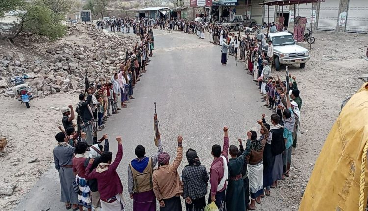 وقفة قبلية مسلحة لأبناء وقبائل مخلاف الجبجب بوصاب العالي  إعلانآ للنكف القبلي والنفير العام