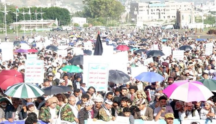 وأكّـد المشاركون في المسيرات بساحة الرسول الأعظم ومديريات المربع الشمالي “يريم، السدة، النادرة، والرضمة”، وعشراتِ الساحات في المحافظة، أن “اليمن سيستمر في خوض معركة العزة والكرامة ضد الكيان الصهيوني حتى وقف العدوان الصهيوني ورفع الحصار عن غزة”.