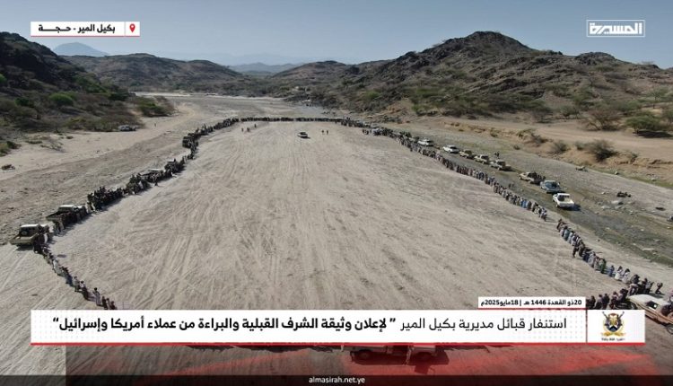 قبائل بكيل المير بحجة تجدد تفويضها للسيد القائد وتؤكد استمرار دعم غزة