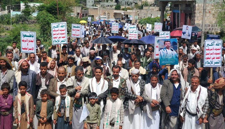 خمس مسيرات حاشدة بمديرية عتمة تحت شعار “لا أمن للكيان.. وغزة والأقصى تحت العدوان”