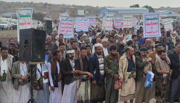 وأكد بيان صادر عن المسيرة استمرار الموقف الثابت لأبناء ميفعة عنس والشعب اليمني في نصرة الشعب الفلسطيني والصمود والثبات، والاستعداد والجهوزية لمواجهة قوى الهيمنة والاستكبار بقيادة أمريكا وإسرائيل.