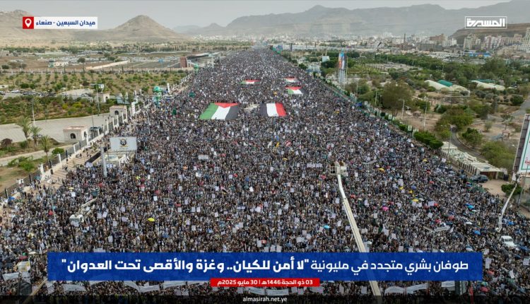 صنعاء تستنفر في مليونية جديدة نصرة لرسول الله وللأقصى وغزة تحت شعار (لا أمن للكيان.. وغزة والأقصى تحت العدوان)