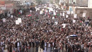 وأعلن المشاركون في المسيرة تأييدهم الكامل وتفويضهم المطلق لقائد الثورة السيد عبد الملك بدر الدين الحوثي، لاتخاذ ما يراه من قرارات وخيارات مناسبة لنصرة الشعب الفلسطيني المظلوم.