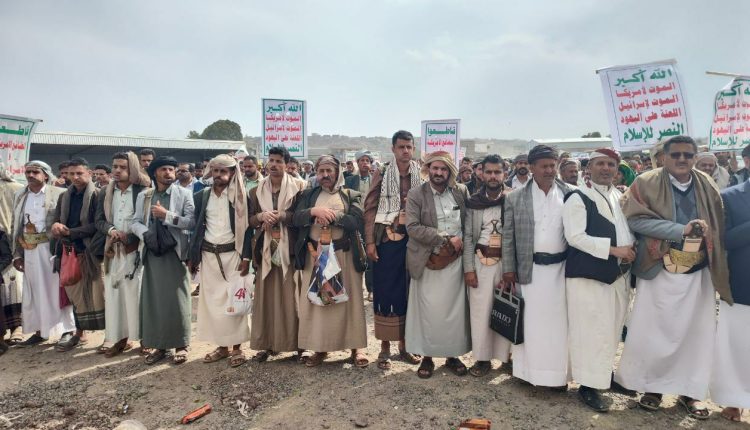 نظمت بمديرية ميفعة عنس بمحافظة ذمار وقفة شعبية تحت شعار ” ثابتون مع غزة وإيران … ضد الإجرام الصهيو أمريكي” نصرة للقضية الفلسطينية ، وتأييداً للرد المشروع لجمهورية إيران الإسلامية ، ودعماً ، وإسناداً للقوات المسلحة اليمنية .