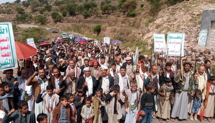ثلاث مسيرات شعبية بمديرية مغرب عنس بعنوان «مباركة بانتصار إيران.. وثباتا مع ازة حتى النصر»