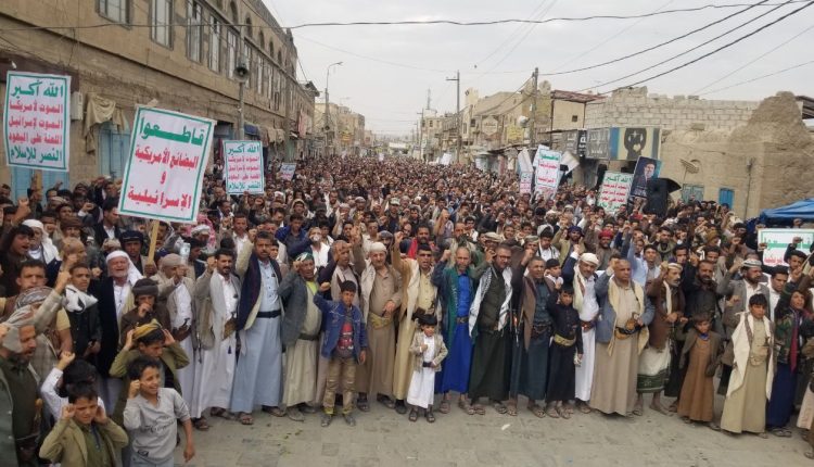مسيرتان حاشدتان بمديرية جهران نصرة لفلسطين ومباركة لانتصار إيران